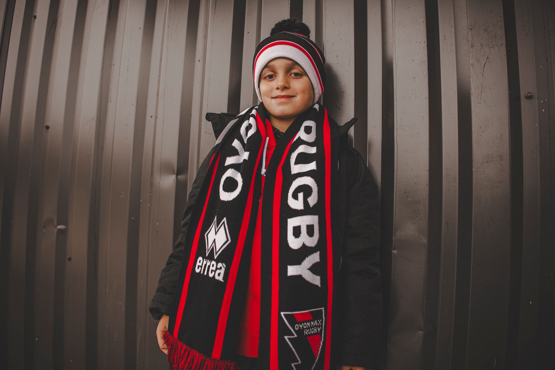 L'écharpe de la saison 2025-2026 de marque ERREÀ avec la mention "OYONNAX RUGBY".