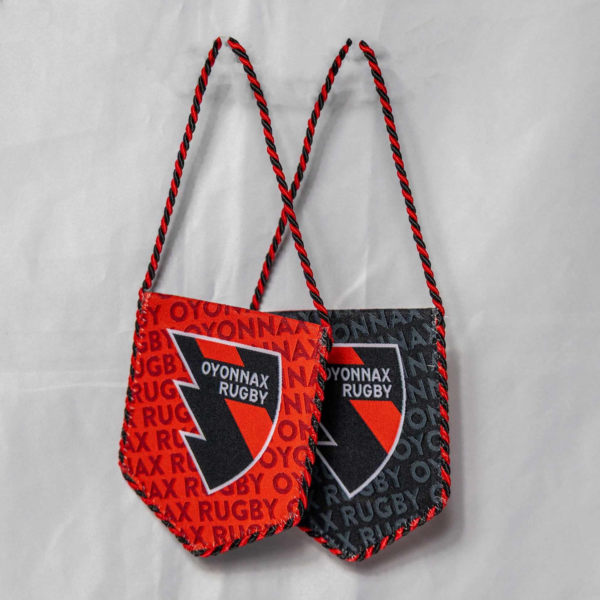 Fanion tissé officiel Oyonnax Rugby de taille 8x10cm. Une face de couleur rouge et une autre face de couleur noire. Vendu à l'unité.