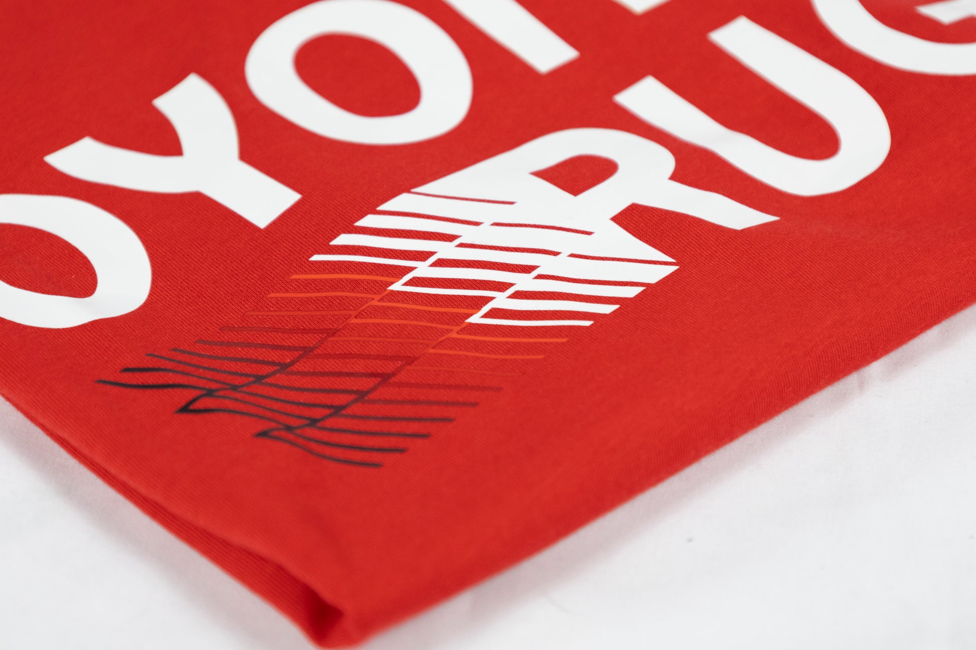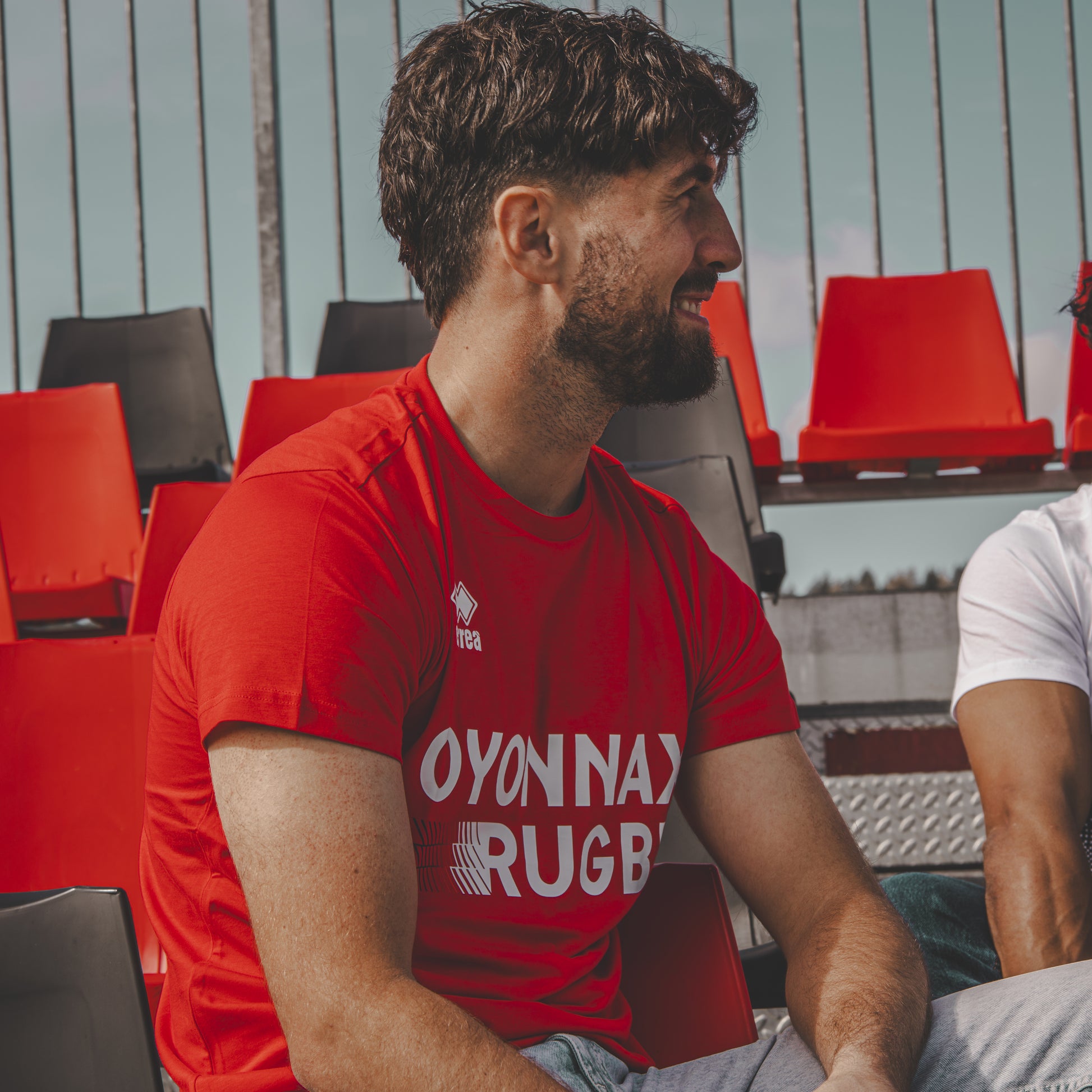 Tee-shirt "life style" de couleur rouge, de marque ERREÀ et avec la mention "OYONNAX RUGBY".